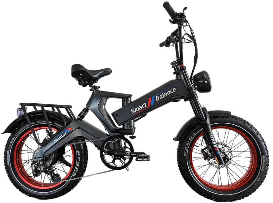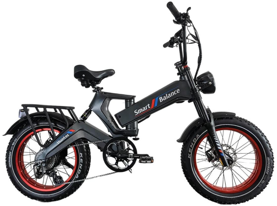 SmartBalance Hunter - электровелосипед с максимально вызывающим и кричащим дизайном. Такой электротранспорт точно заставит прохожих оборачиваться вам вслед. В этом электровелосипеде есть всё, о чём можно мечтать: мягкая подвеска, широкие шины, съёмный аккумулятор, гидравлические тормоза, большой аккумулятор. Он подойдёт как для езды по бездорожью, так и езды по городу.